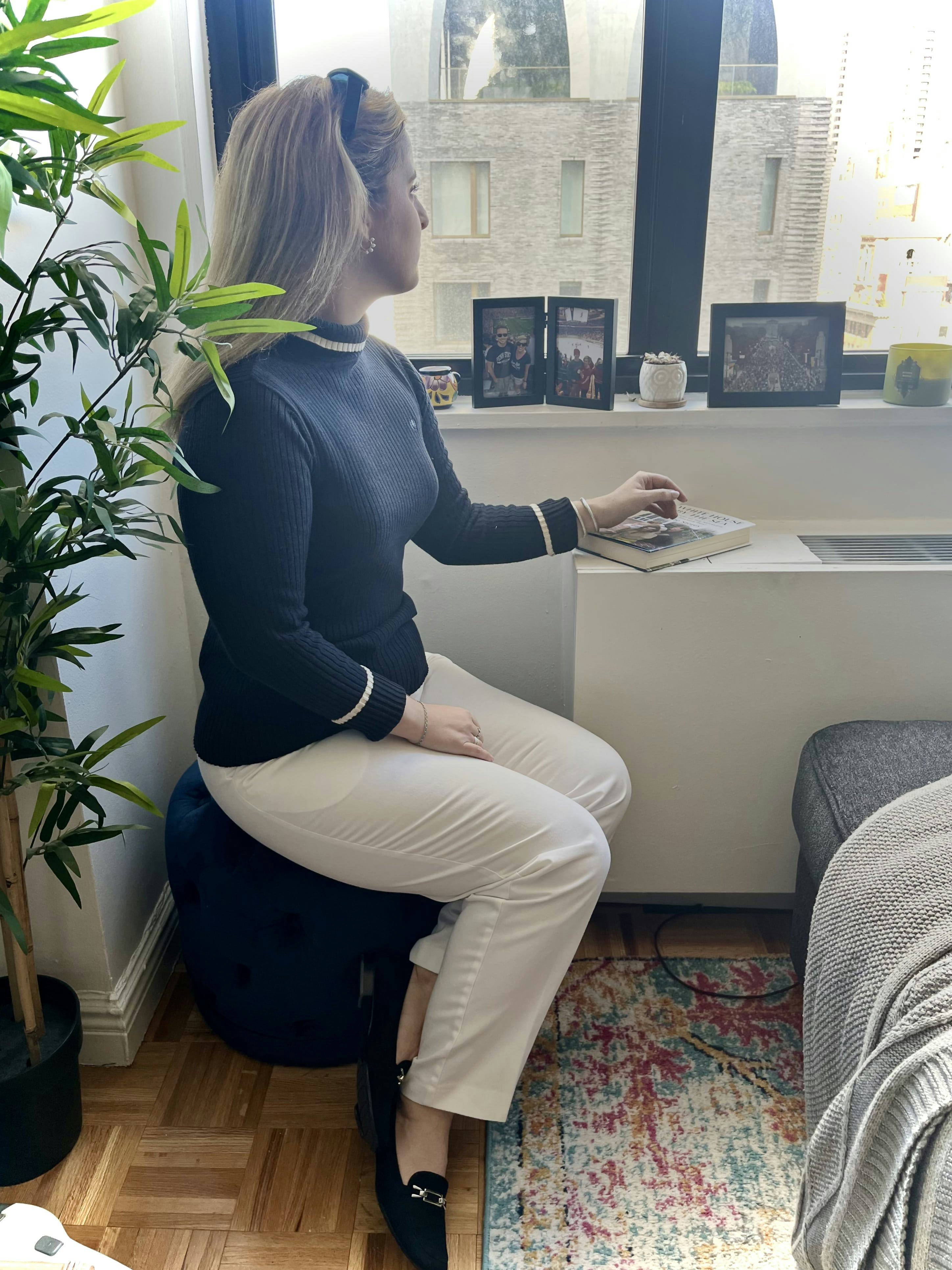 Leffler also included a four-button, collarless blazer with a beige, checkered fabric from none other than Henri Bendel, a New York classic that was a favorite of Fifth Avenue shoppers for years. Paired with the leather belt she also included around my waist, the blazer feels put together without feeling too fancy for everyday wear. Nothing says quiet luxury, though, quite like a pure cashmere sweater; the red crewneck she found is as smooth as butter — as any pure cashmere should be — and will be a perfect added layer for running errands once temps drop in the city.